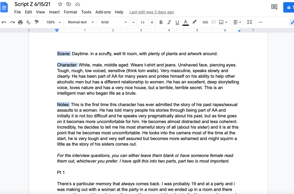I have three actresses’ ready with scripts for the project, have written out a script from back in Aug.