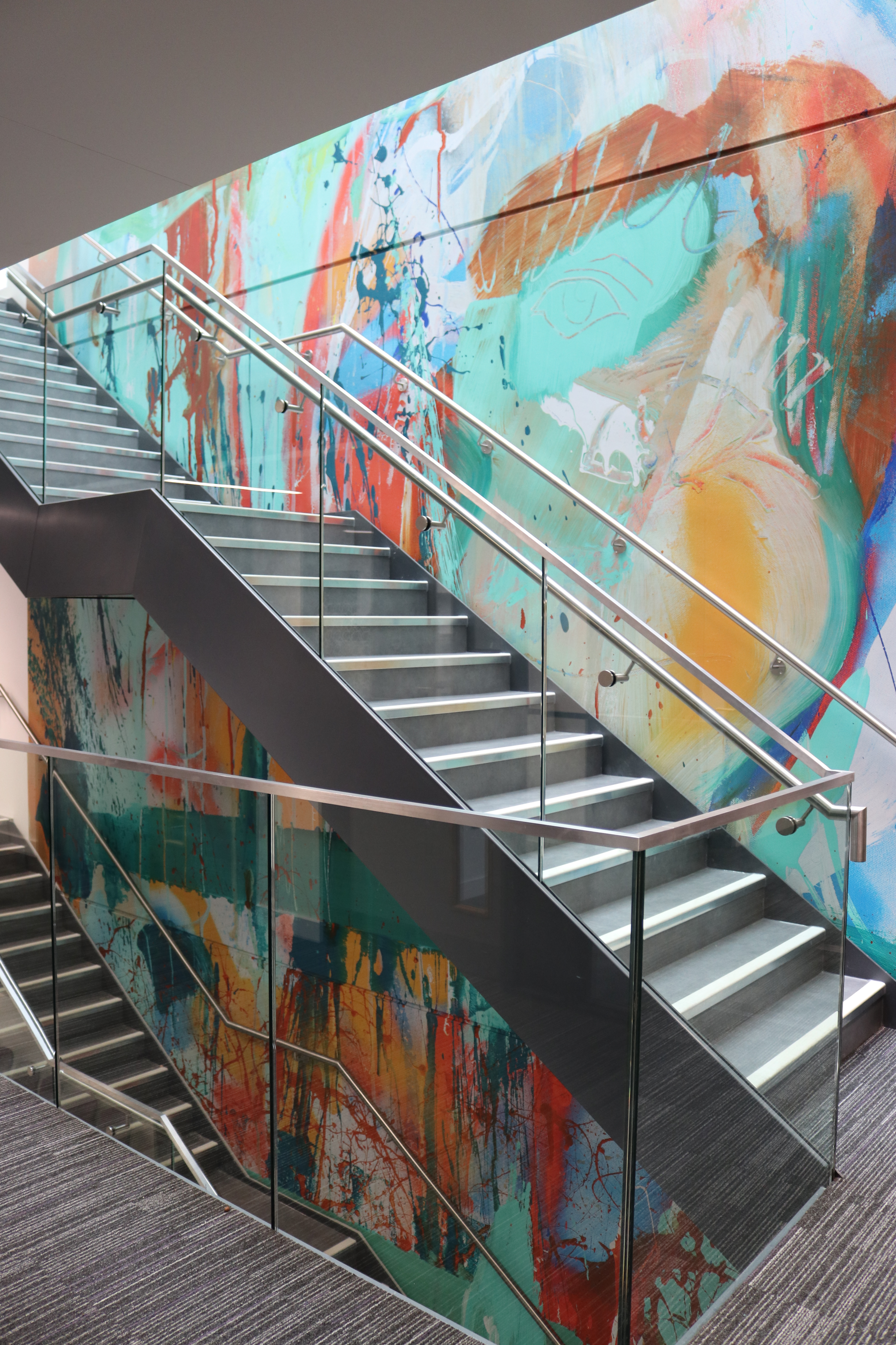 I have created multiple commercial/private murals including for Achilles Crossfit, Chesterton College, Cambridge UK, the Human Centre for Brain Health (2019 award), LUSH USA and for the Loughborogh Dairy Farm UK (below).