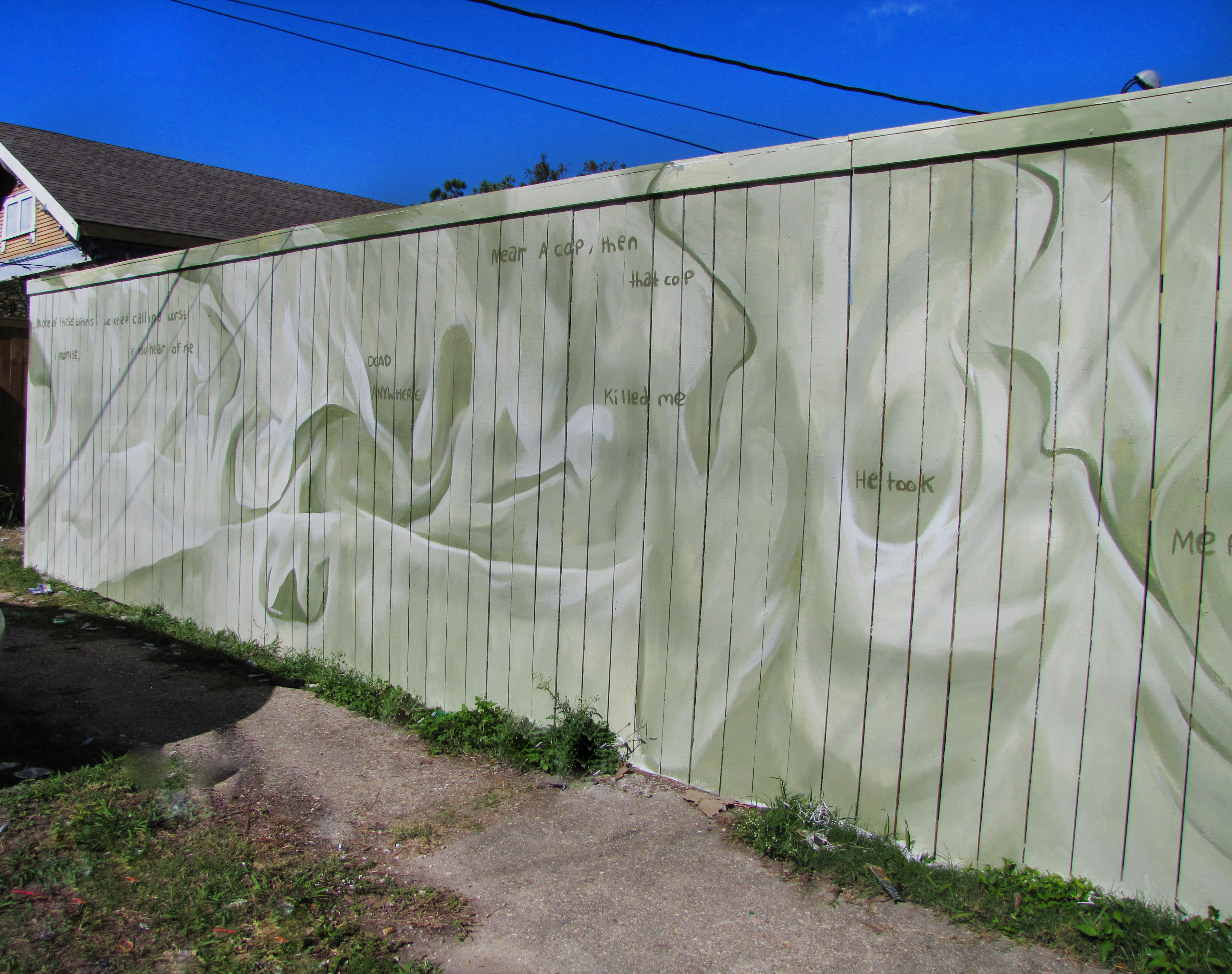 Following the murder of Breonna Taylor in 2020, I was lucky enough to collaborate with the award-winning local poet Jericho Brown to form a mural on Gallier Street in the 9th ward of New Orleans. I incorporated poetry into the bedsheet-inspired forms to reference the violence committed against Ms Taylor on the night of her murder.