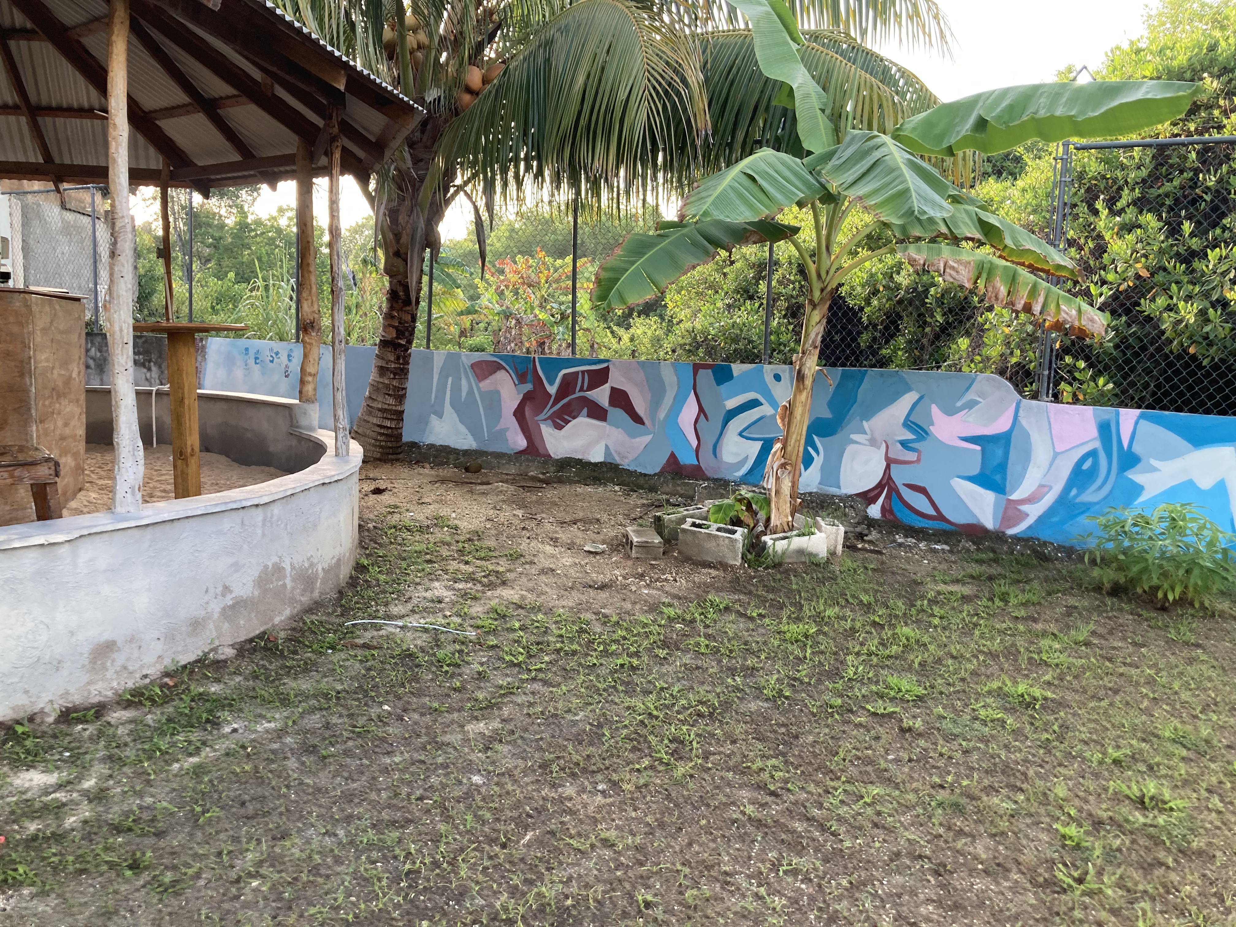 Inspired by the local foliage and environment using only house paint available. I was invited by St Paul’s Lutheran Church (Kim Stephens) to join this civic mission mini residency to Little Bay Jamaica in order to teach art to rural children, bring essential supplies to the community and provide a creative service.